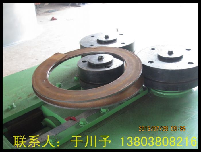 該機(jī)適合卷制各種小口徑法蘭,可以一次連續(xù)成型成彈簧狀,適合于加工電機(jī)擋圈法蘭,管道法蘭等。